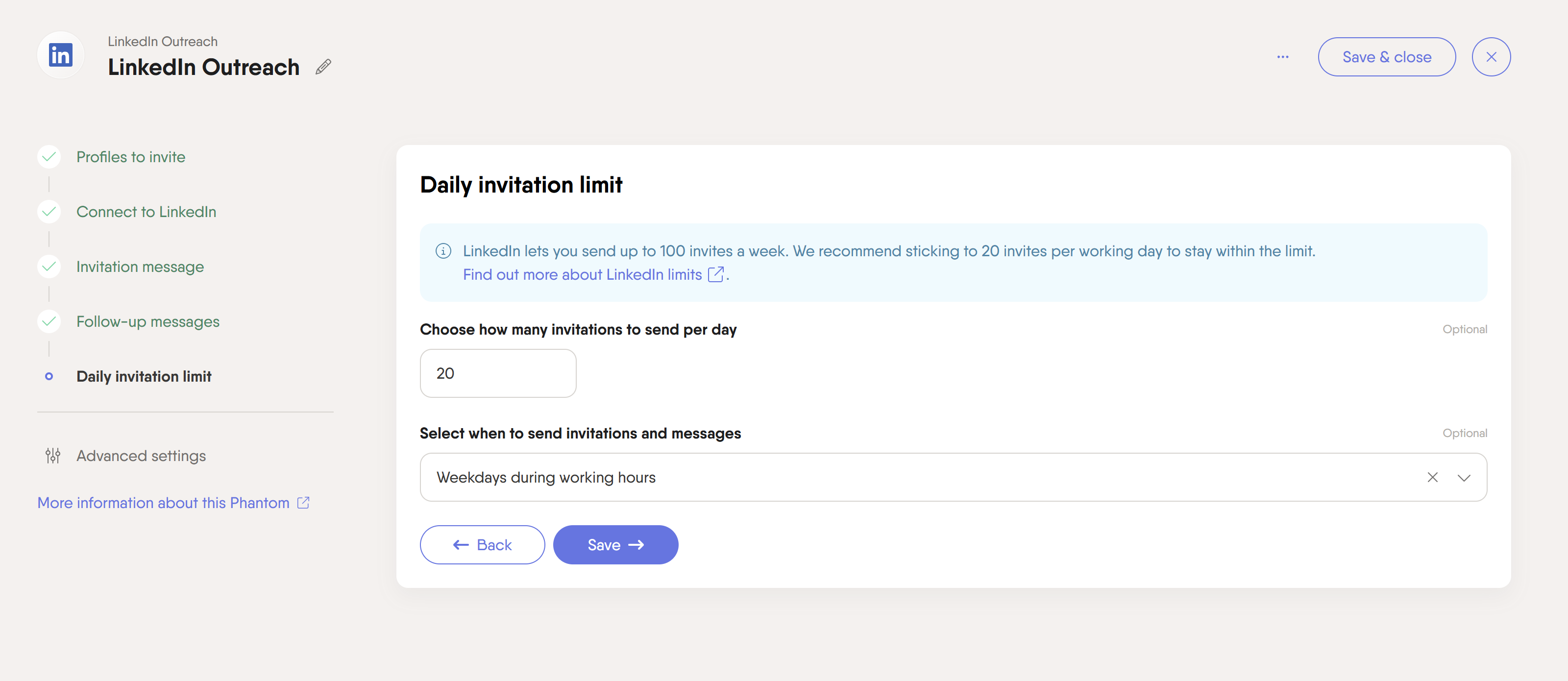 LinkedIn adapts limits based on behavior signals like invites sent, acceptance rate, spam reports, and account age. With PhantomBuster’s prospecting automations, you can space actions, personalize at scale, and stay within platform norms. Always follow LinkedIn’s terms.