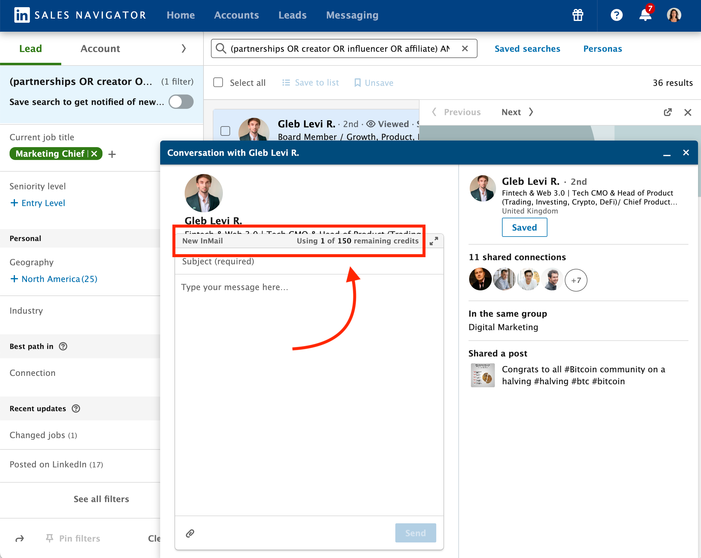 If a member has Open Profile enabled, you can message them without using InMail credits. Helpful when you’re conserving InMail credits for higher-priority accounts.
