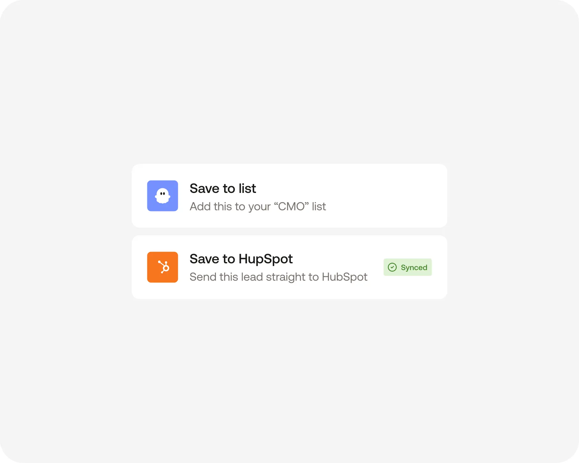 Save leads instantly to your lists or CRM