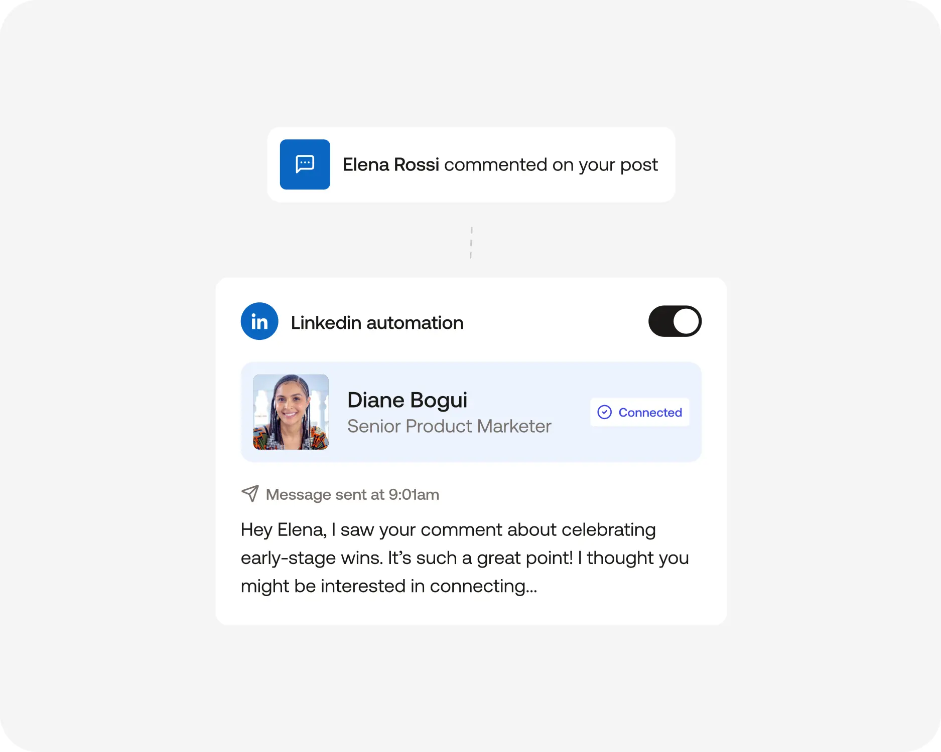 Use fresh data points and AI to generate relevant, unique messages that start real conversations.