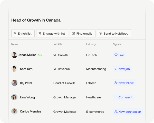 - Push warmest leads to HubSpot with selected signal triggers